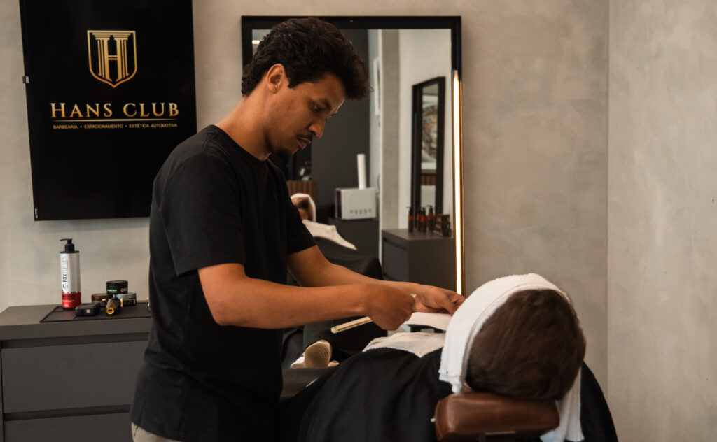 Hans Club – O Ponto de Encontro da Tradição Masculina em Blumenau, SC Bem-vindo ao Hans Club, onde tradição e qualidade se unem em um ambiente acolhedor. Nossa barbearia oferece cuidados masculinos autênticos, inspirados na herança alemã de Blumenau, com foco em excelência. Ambiente Distinto: Espaço clássico e funcional, com tons neutros, criando atmosfera familiar. Incluímos áreas para adultos e crianças, estacionamento, lavação automotiva, café aconchegante e cervejas artesanais para maior comodidade. Atendimento de Excelência: Barbeiros dedicados, como Robson (Robinho) e Gerson (visagismo), oferecem cortes precisos de cabelo e barba com produtos de alta qualidade. Desfrute de bebidas em um ambiente descontraído.